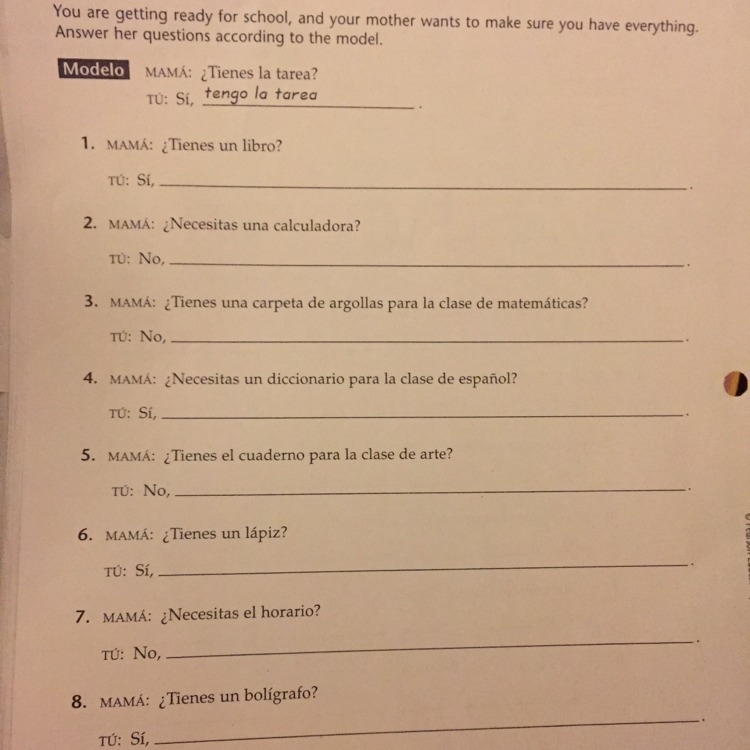 3- No, no tengo una carpeta de argollas para la clase de matemáticas.