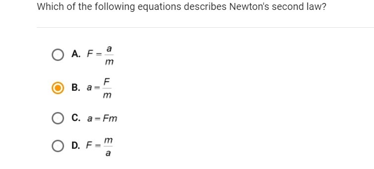 Newton's second Law states that the acceleration of an object is proportional to the net force applied on it, according to the equation: