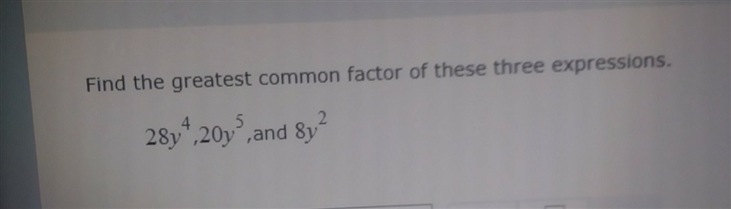 Find the greatest common factor of 28y^4,20y^5,8y^2