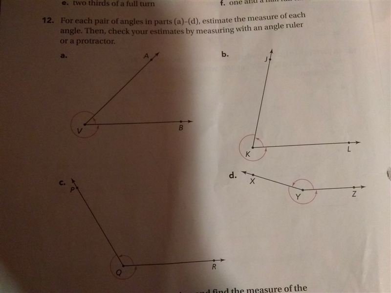 C: Q is an obtuse angle, so it is over 90 degrees but less than 180 degrees. I would say it's around 110 degrees.