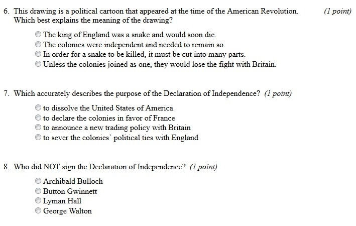 7. Which accurately describes the purpose of the Declaration of Independence?