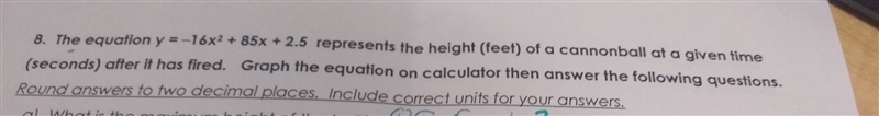 what is the domain? The domain is the time the cannon ball is in the aire which is all values from o seconds to 5.34 seconds: 0 < x < 5.34