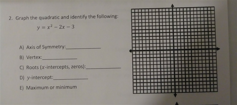 Graph the quadratic and identify the following: y=x^2-2x-3