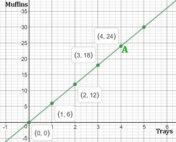 Point A is at (4, 24) or (4 trays, 24 muffins).