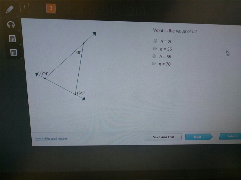 the 2 unknown interior angles = 180 - 2h ( straight angle ), hence