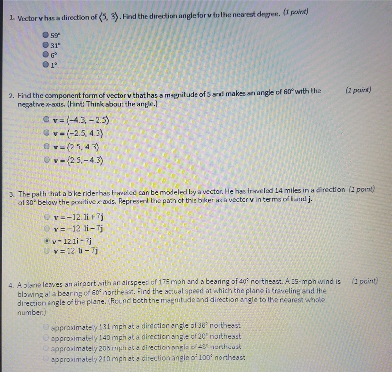 \mathbf v=14\cos(-30^\circ)\,\mathbf i+14\sin(-30^\circ)\,\mathbf j=12.1\,\mathbf i-7\,\mathbf j
