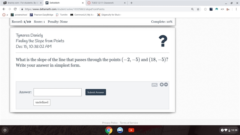 with (x₁, y₁ ) = (- 2, - 5) and (x₂, y₂ ) = (18, - 5)