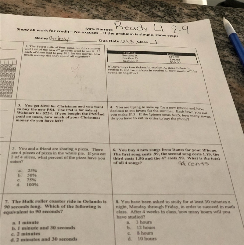 6) 0.99 + 1.19 + 1.50 + 0.99 = $4.67