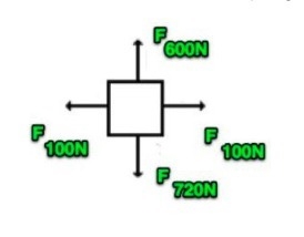 PLEASE HELP!!! THIS IS URGENT Find the net force in this Free Body Diagram: Question 7 options: 120 N downward 720 N downward 1520 N 120 N upward