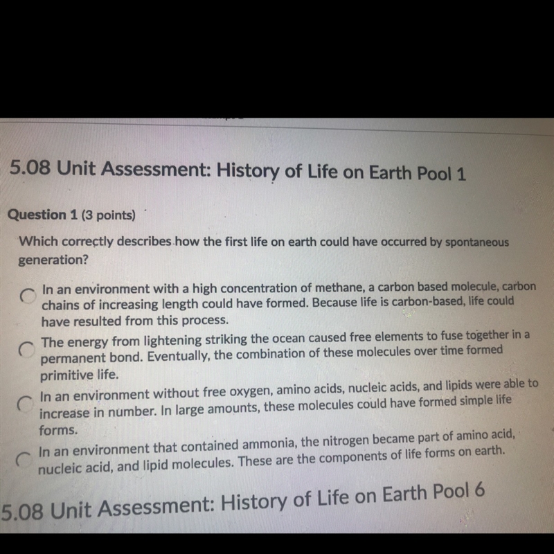 In an environment without free oxygen, amino acids, nucleic acids, and lipids were able to increase in number. In large amounts, these molecules could have formed simple life forms.