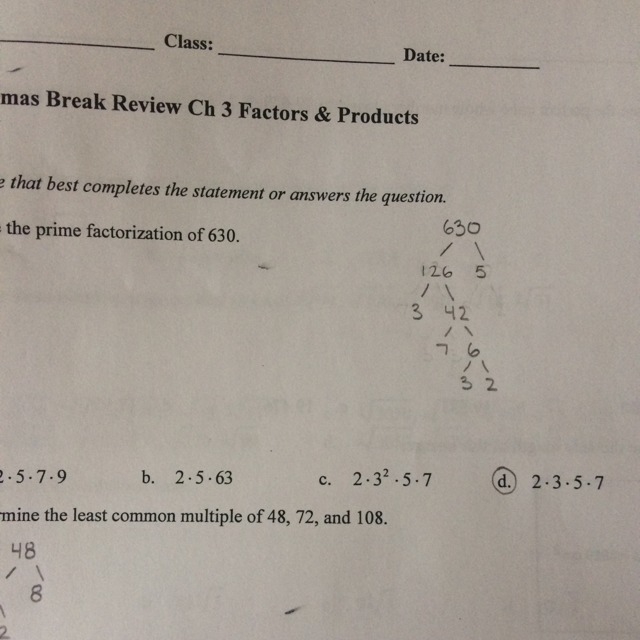 You have the correct factor tree drawn out. Nice work on that. However, the final answer is not choice D.