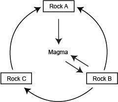 Metamorphic rocks form from existing rock. It is due to heat and pressure that these types of rocks are formed. They don't melt into magma but the heat and pressure change the chemical structure of the rocks. This is why there is no arrow that points to magma, unlike the other two types of rocks. They can be broken down and form into sedimentary rocks.