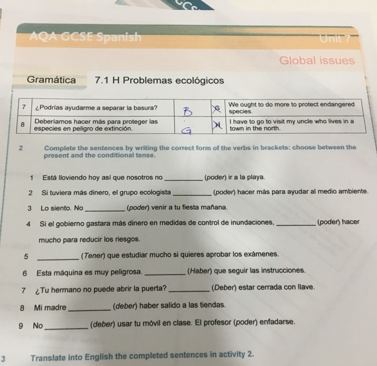 1 podremos 2 podría... 3 no puedo. 4podria 5tiene