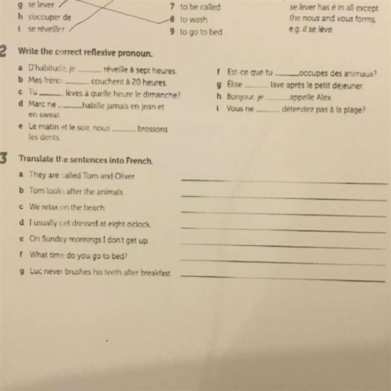 2.a) ----- je me réveille----b) Se couchentc) Tu te lèvesd) Marc ne s'habille jamais