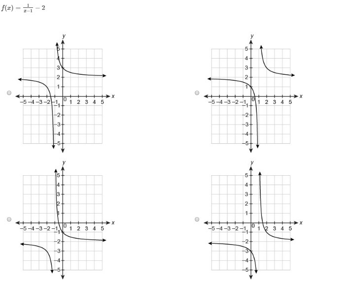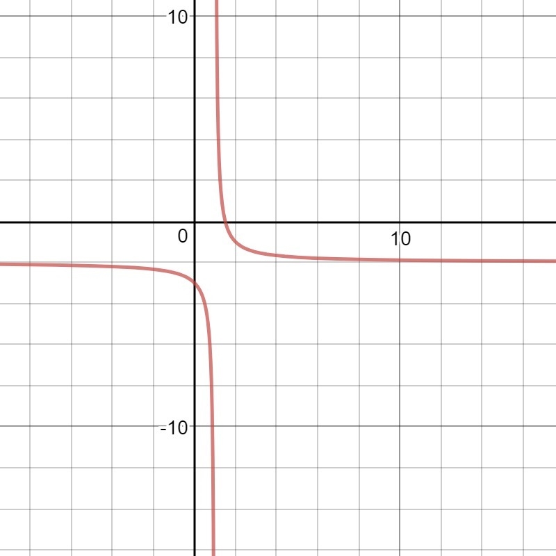 f(x)=(1)/(x-1)-2. When we graph it, we get something like the image attached below. We can see that the one of the curves intersect the y-axis at