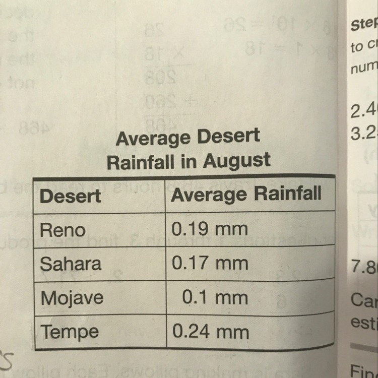 In December the average total rainfall in all of the desert together is 0.89 mm explain how to use the figures from the table to write a comparison of the total desert rainfall …