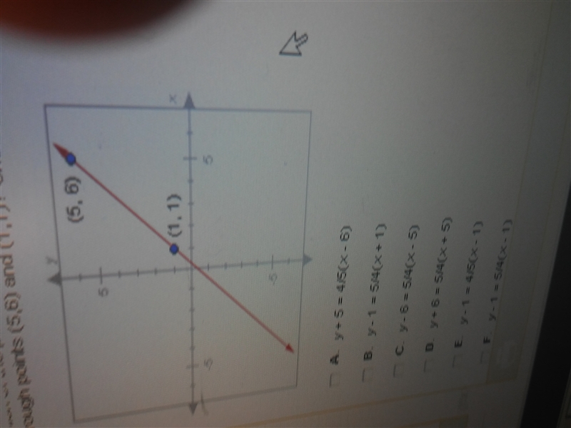 Which of the point-slope equations below is correct for the line that passes through points (5,6) and (1,1)?