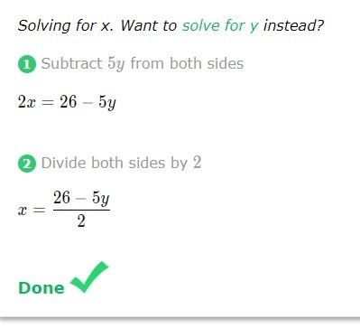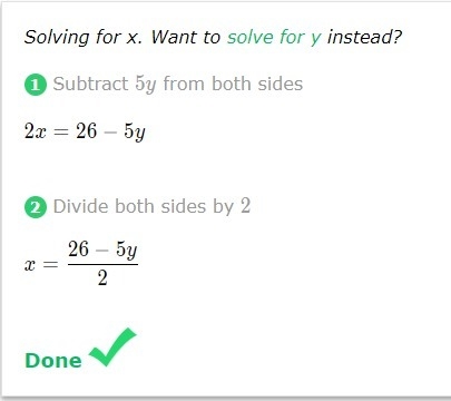I'm having a bit of trouble solving this equation, using multiplication to eliminate and solve it. If someone could explain it, that would be amazing, thanks! 2x + 5y = 26 …