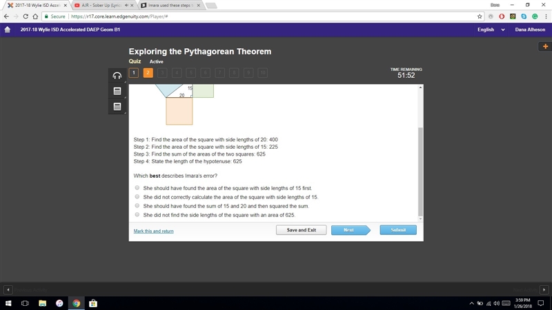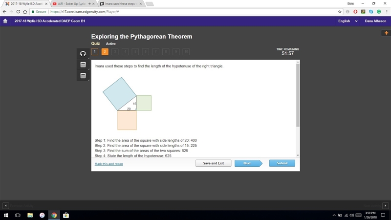 Pythagorean theorem is a^2 + b^2 equals c^2