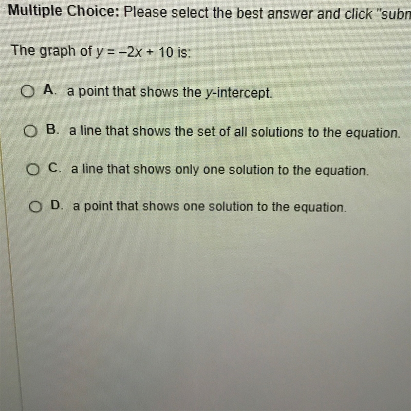 Answer: Choice B) Line showing all the solutions to the equation