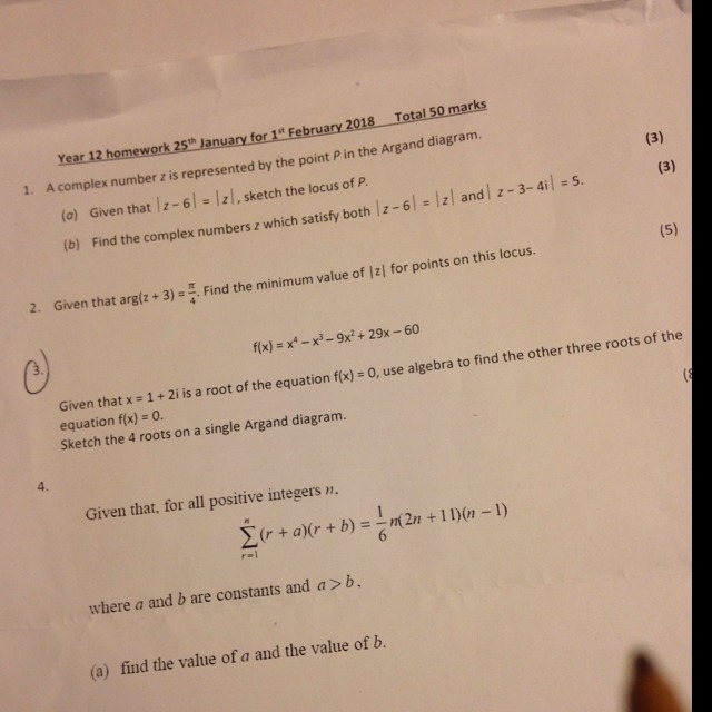 Factoring f(x) would give a factor (x-1-2i), so you can divide f(x) by this, leaving (x-3)(x+4)(x-1+2i), so the other roots are: