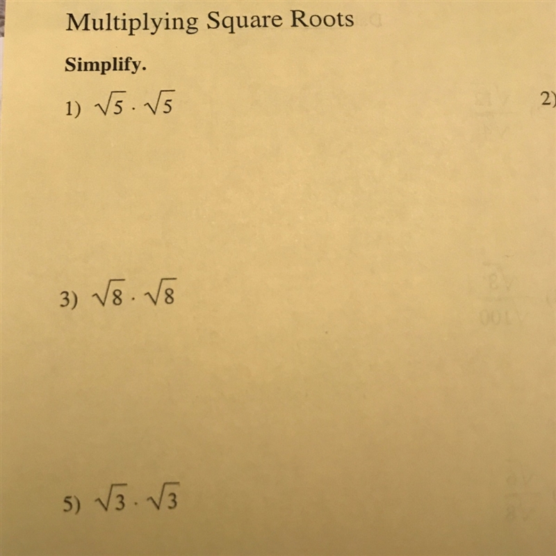So square root of 5 Times Square root of 5 equals square root of 25 which is 5. Do the same for the others.