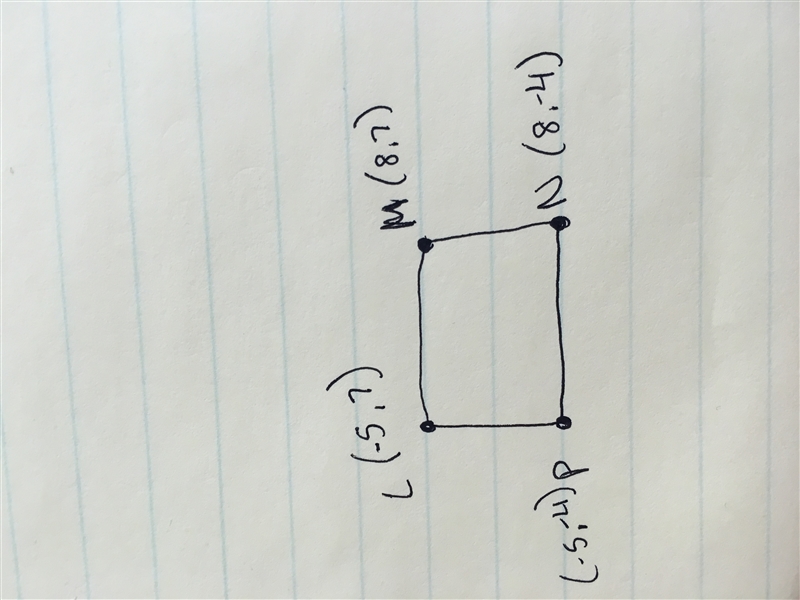 A rectangle is drawn on a coordinate plane. Three vertices of the rectangle are points M(8,7) , N(8,−4) , and P(−5,−4) . Point L is the fourth vertex of the rectangle. How long is the side of the rectangle connecting points L and P? Enter your answer in the box.
