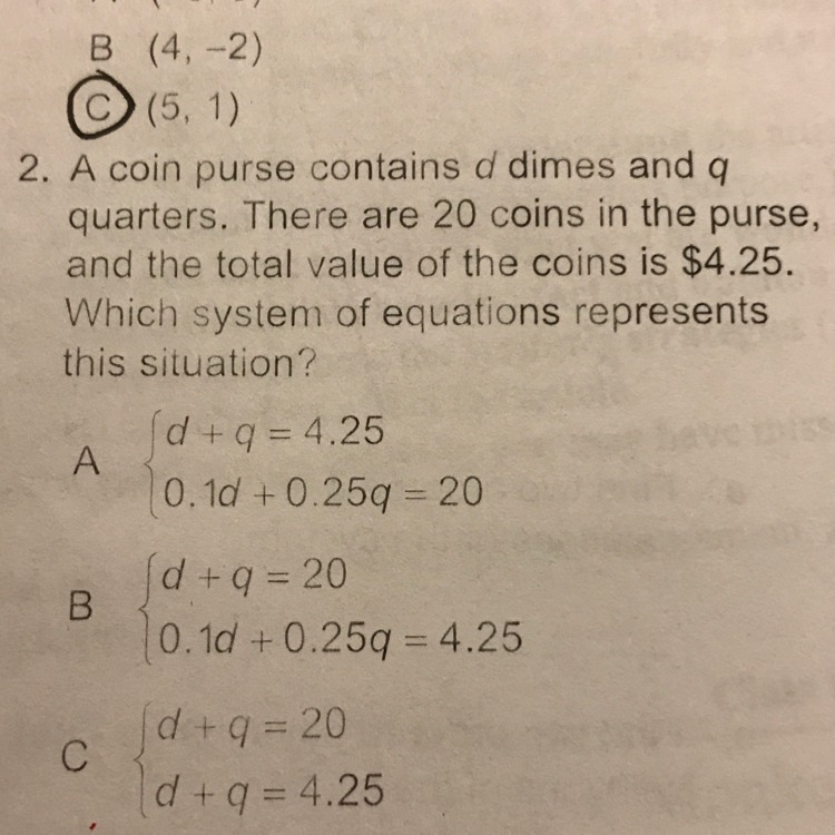I'm pretty sure it's C since d plus q have two answrrs, 20 and 4.25 : P