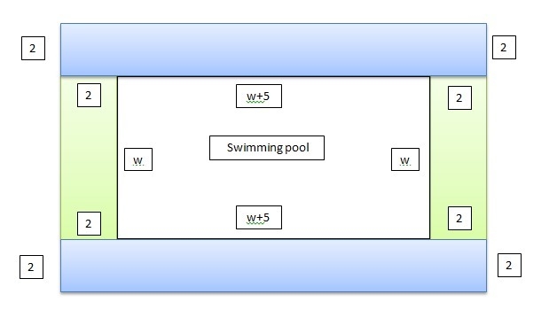 The Smith family is designing new plans for an in-ground pool. Mr. Smith draws a rectangular shape with a length that is 5 feet longer than the height.