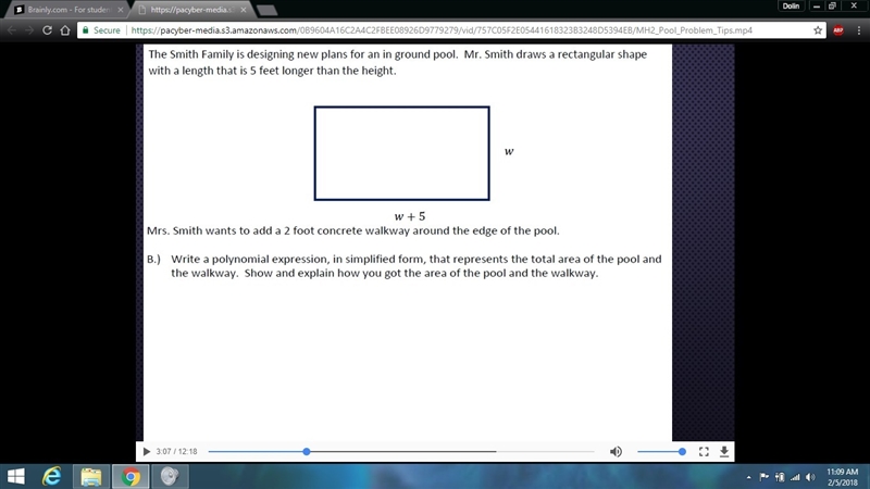 Mr. Smith wants to add a 2 foot concrete walkway around the edge of the pool. Write a polynomial expression, in simplified form, that represents the total area of the pool and the walkway. Show and explain how you got the area of the pool and the walkway.