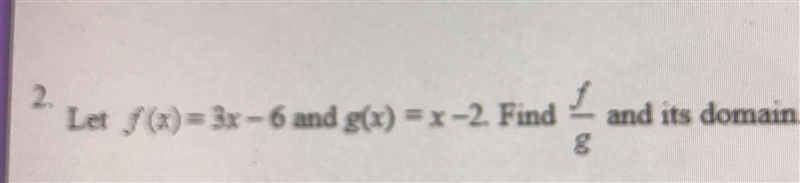 Let f(x) = 3x - 6 and g(x) = x -2. find f/g and it's domain.