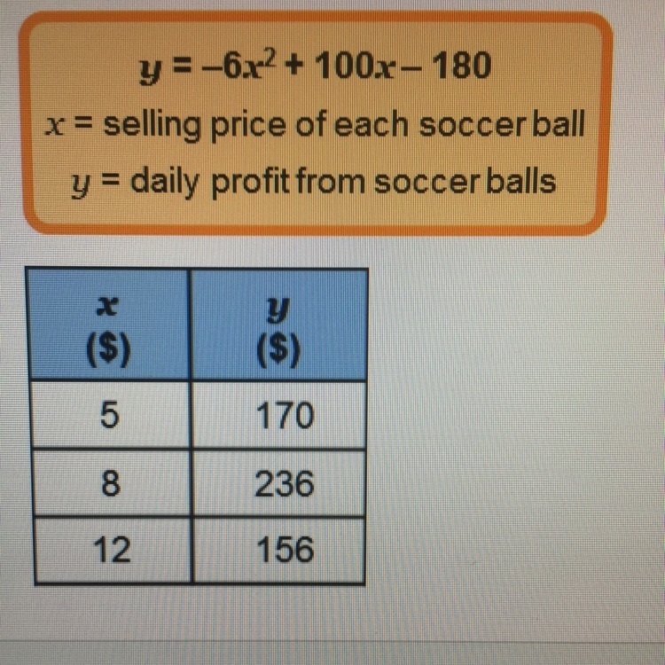 The given quadratic equation is y = (-6x² + 100x - 180)
