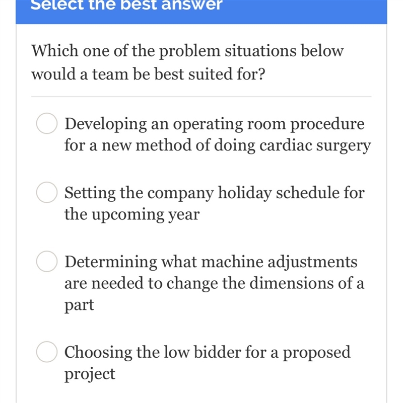 The answer is 100% definitely A. You would need a team for that because one person could make a mistake. Other professionals in the room would be helpful to catch each other's error. This is a cardiac surgery were talking about. They need to error. Other ideas are helpful to. Just one idea could go wrong. Different thoughts and ideas are needed. The parents want their child alive after a surgery like this. Plus, a team is needed because not just one person does the surgery. All the doctors that work on the patient are needed to know what is going on, and be aware of all changes.