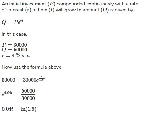 How long would you have to invest $30000 to reach $50000 at 4% interest compounded daily?