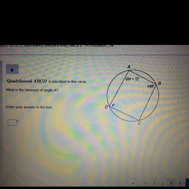 Since x is across from 148, and arcs opposite inscribed angles = 2×angle, then we can find x first.