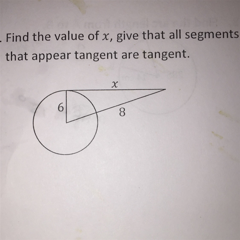 Find the value of x, given that all the segments that appear tangent are tangent.