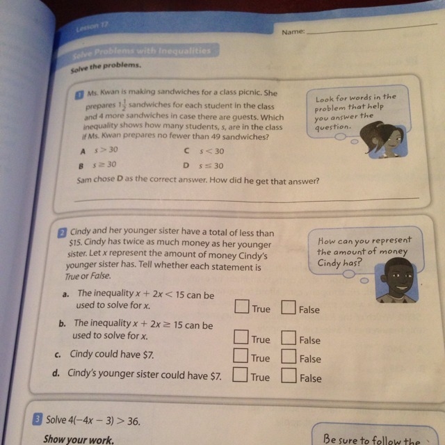 So there must be less than or equal to 30 students in the class, and the sign that represents that is ≤. The answer is D, and Sam is Correct!