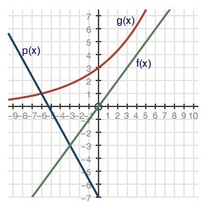 C) p(x) = g(x) where their graphs cross, at x = -6. Both functions have the value 1 for that value of x.