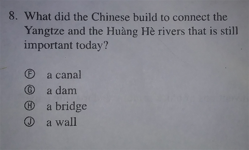 The Grand Canal was built to connect a)the Yellow Sea and the East China Sea. b)the Yangtze River and the East China Sea. c)the Huang He River and the Yangtze River. d)the Huang He River and the Yellow