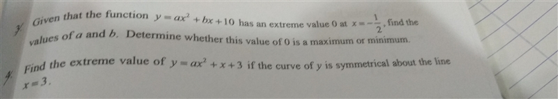 4.) If the quadratic function is symmetrical about x = 3, that means that the minimum or maximum must be at x = 3.