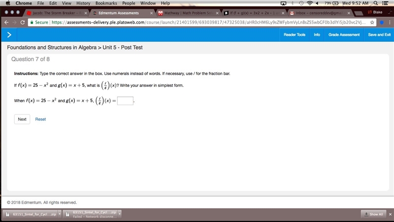(f/g)x = (25 - x^2) / (x + 5) (5 - x)(x + 5) / (x + 5)