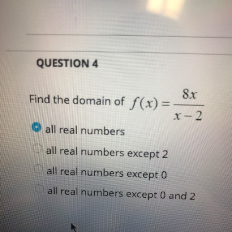 The 2nd selection, "all real numbers except 2", is appropriate.