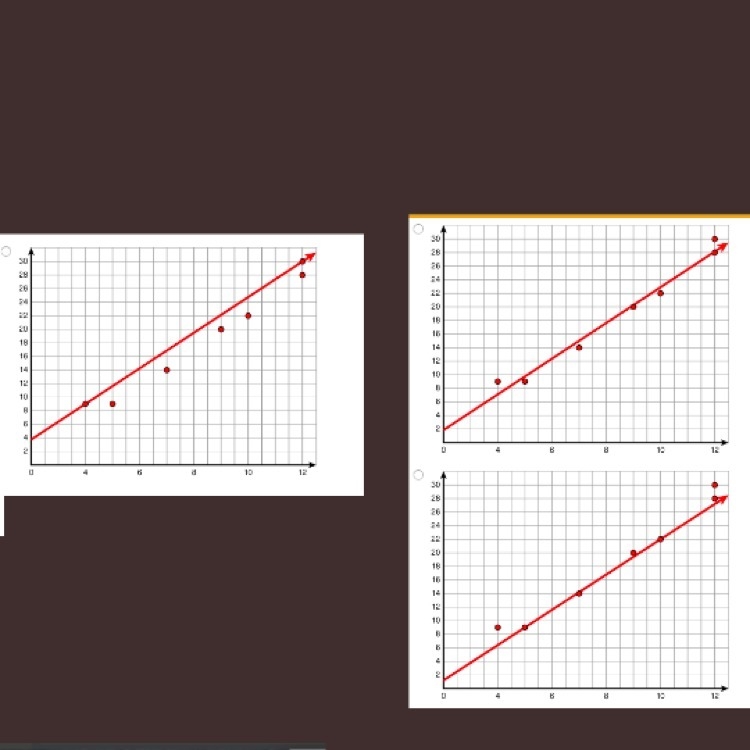 Look at the data in the table below X Y 4. 9 12. 28 7. 14 9. 20 5. 9 12. 30 10. 22 Which graph shows the best fit for this data