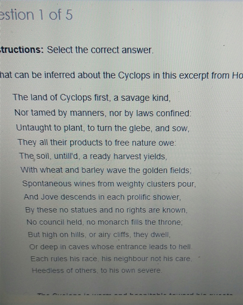 This proves that the correct answer is c ) The Cyclops does not follow typical rules of the civilized human world.