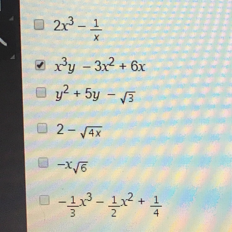 Which algebraic expressions are polynomials? Check all that apply. PLEASE HELP