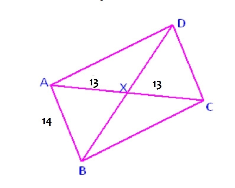 AX = XC = 13. triangle ABX is a right triangle with hypotenuse 14.