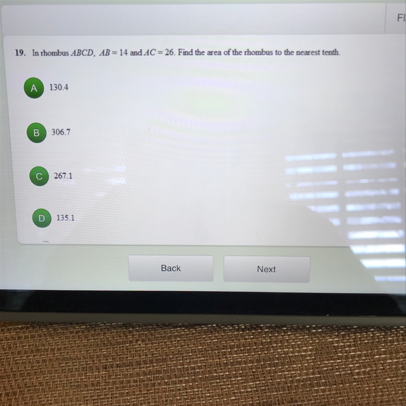The four triangles formed by construction of the diagonals are all congruent since the diagonals are perpendicular bisectors.Total area of the rhombus is 4 times of ABX triangle