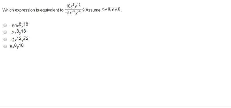 (10 * x ^ 6 * y ^ 12) / (- 5 * x ^ -2 * y ^ -6)
