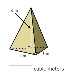 V = (1/3)Bh = (1/3)*(1/2)(3 m)(4 m)*(6 m)