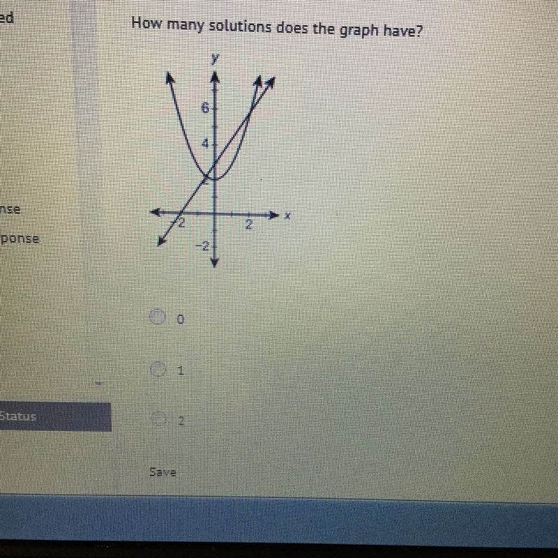 x-axis so while the quadratic has no real solutions, the straight line passing through it does as it intersects the x-axis at x=-2.